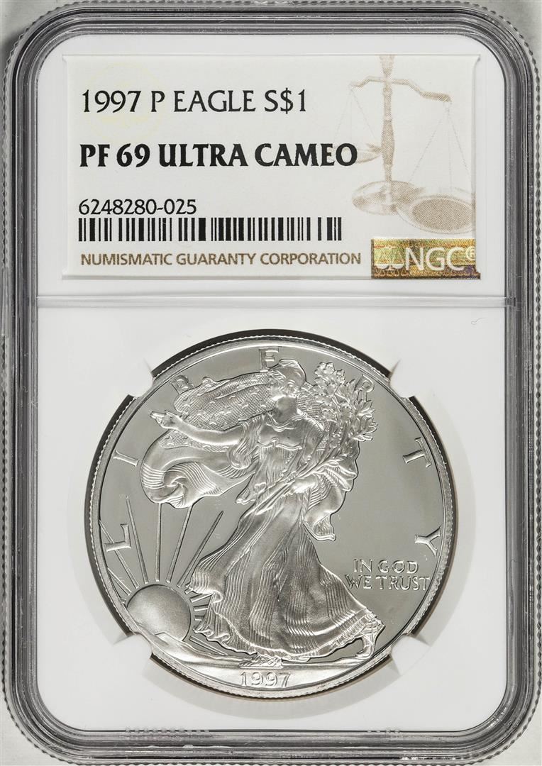 1997-P $1 Proof American Silver Eagle Coin NGC PF69 Ultra Cameo