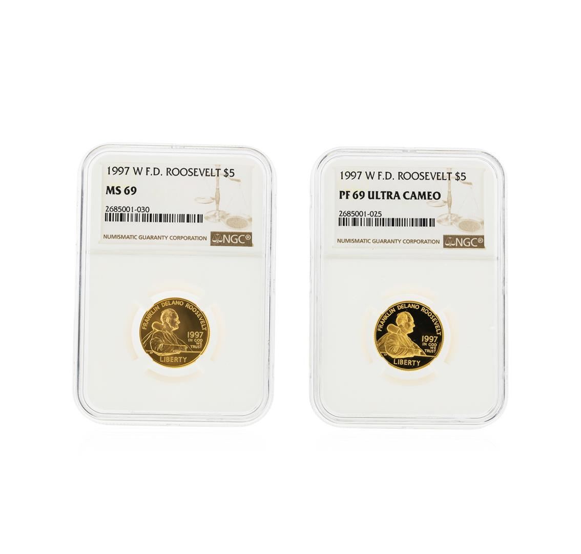 1997-W $5 F.D. Roosevelt Gold Coins NGC Graded MS69 & PF69 Ultra Cameo Set