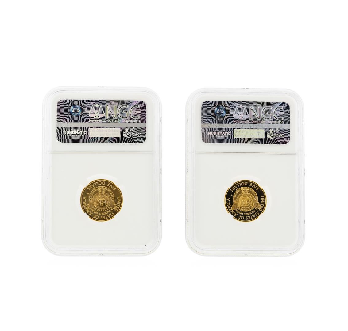 One 1997-W $5 F.D. Roosevelt Gold Coins NGC Graded MS69 & PF69 Ultra Cameo Set. NGC Certified.
