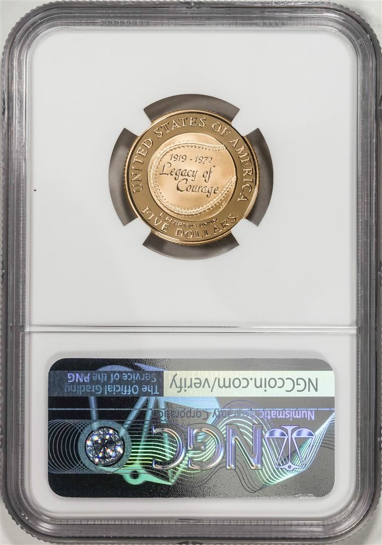 One 1997-W $5 Jackie Robinson Proof Commemorative Gold Coin NGC PF70 Ultra Cameo. NGC Certified.
