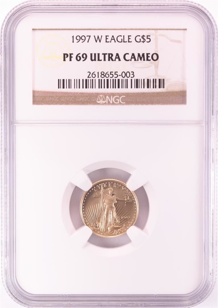 One 1997-W $5 Proof American Gold Eagle Coin NGC PF69 Ultra Cameo. NGC Certified.
