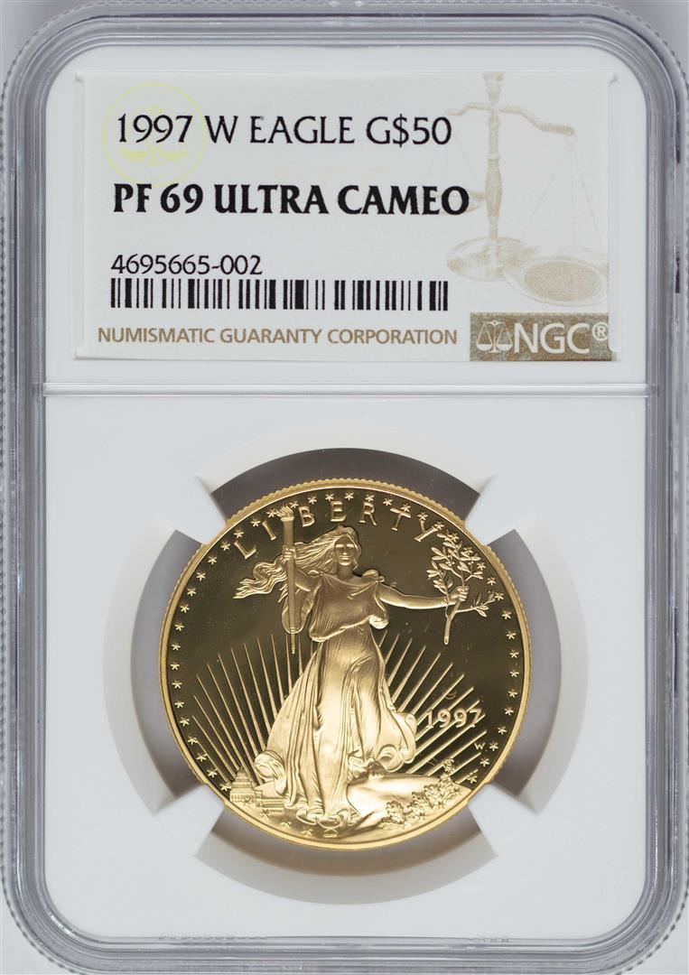 One 1997-W $50 American Gold Eagle Coin NGC PF69 Ultra Cameo. NGC Certified.