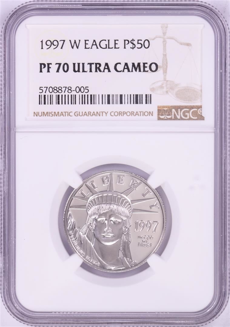 One 1997-W $50 Proof Platinum American Eagle Coin NGC PF70 Ultra Cameo. NGC Certified.