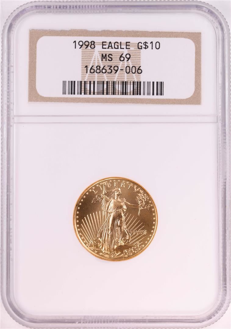 One 1998 $10 American Gold Eagle Coin NGC MS69. NGC Certified.