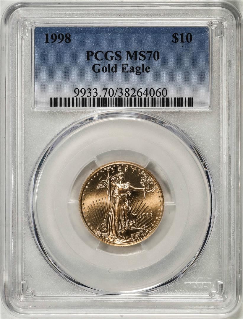 One 1998 $10 American Gold Eagle Coin PCGS MS70. PCGS Graded.