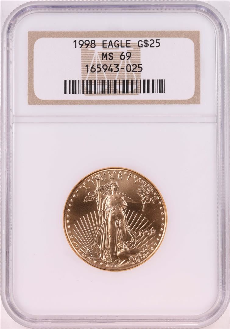 One 1998 $25 American Gold Eagle Coin NGC MS69. NGC Certified.