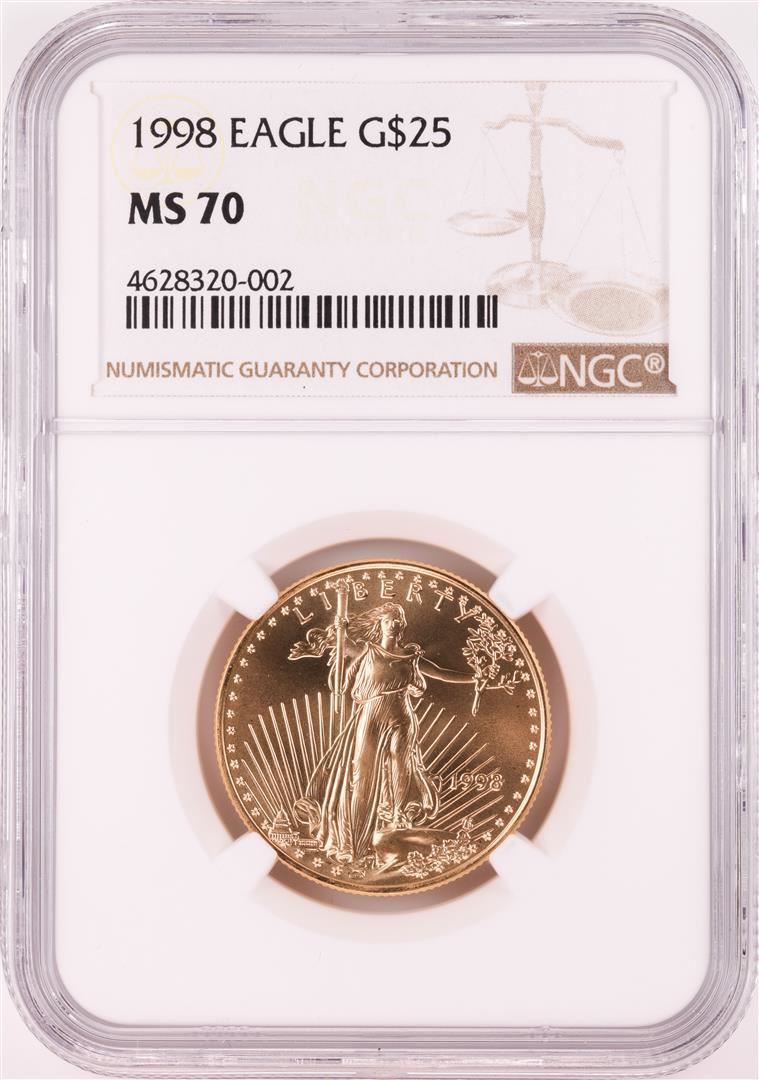 One 1998 $25 American Gold Eagle Coin NGC MS70. NGC Certified.