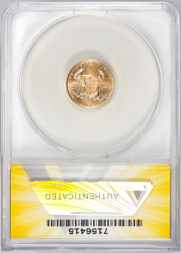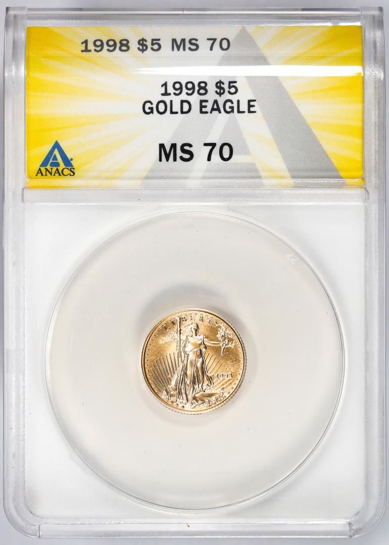 One 1998 $5 American Gold Eagle Coin ANACS MS70. ANACS Certified.