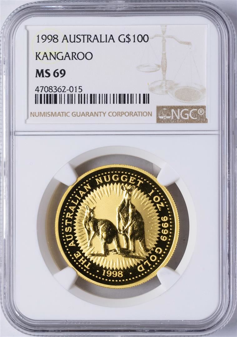 One 1998 Australia $100 Gold Kangaroo Coin NGC MS69. NGC Certified.