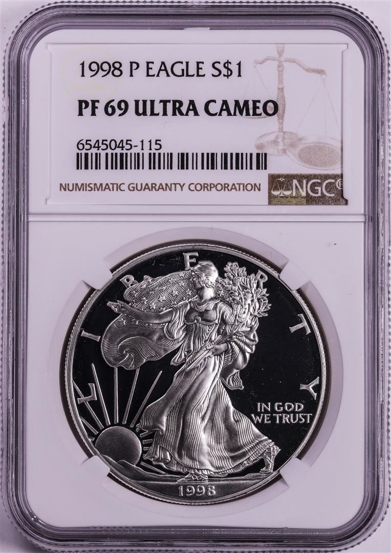 1998-P $1 Proof American Silver Eagle Coin NGC PF69 Ultra Cameo