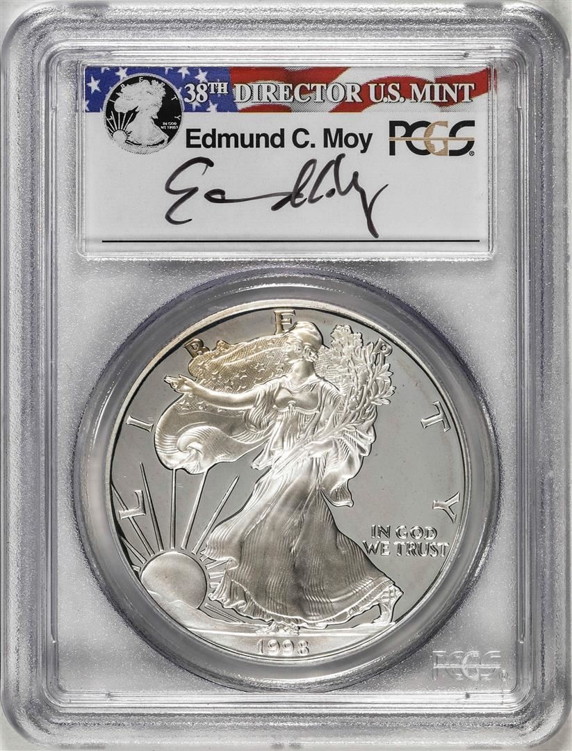 One 1998-P $1 Proof American Silver Eagle Coin PCGS PR69DCAM Edmund Moy Signature. PCGS Graded.