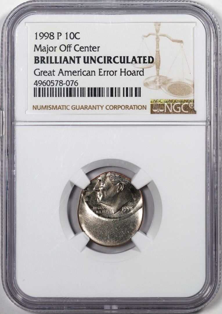 One 1998-P Roosevelt Dime Coin Error Major Off Center NGC Brilliant Uncirculated. NGC Certified.