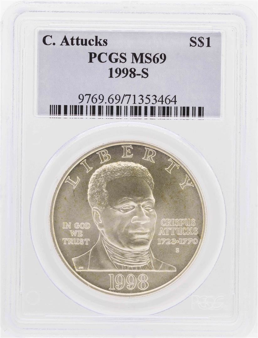 1998-S $1 Crispus Attucks Commemorative Silver Dollar Coin PCGS MS69