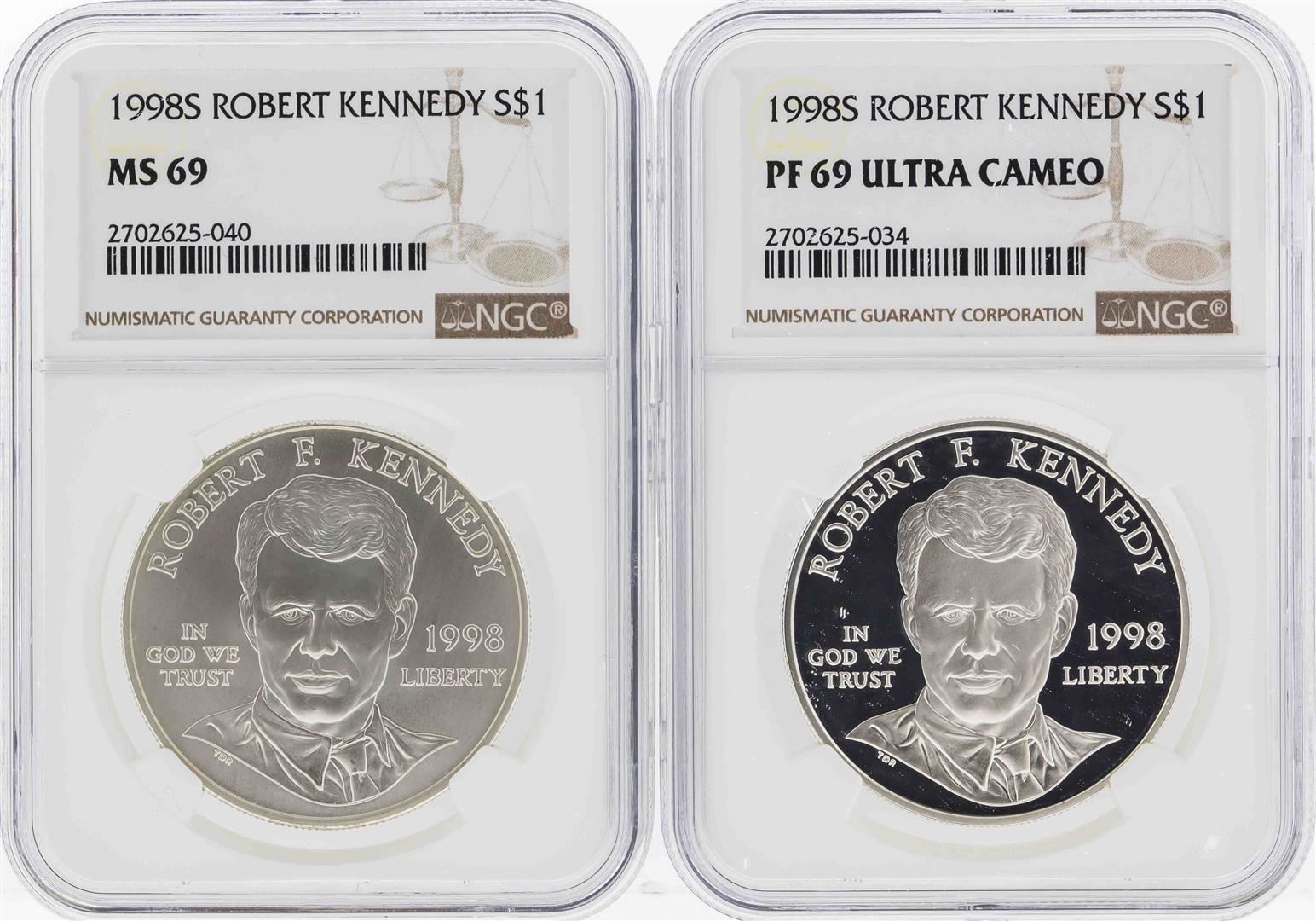 1998-S $1 Robert Kennedy Commemorative Silver Coins NGC MS69 & PF69 Ultra Cameo