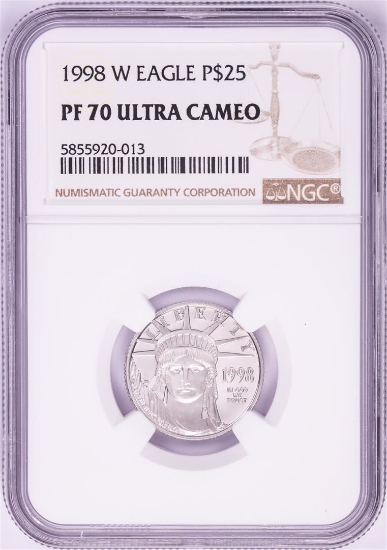 One 1998-W $25 Proof American Platinum Eagle Coin PCGS PF70 Ultra Cameo. PCGS Graded.