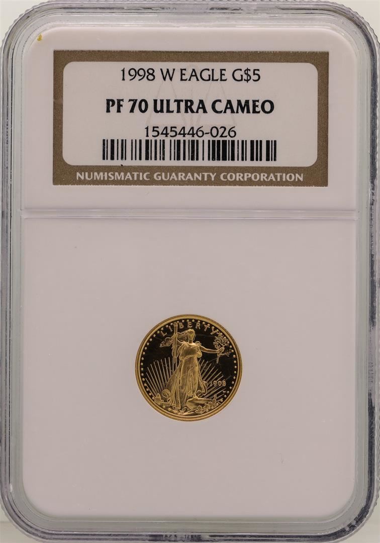 One 1998-W $5 American Gold Eagle Coin NGC PF70 Ultra Cameo. NGC Certified.