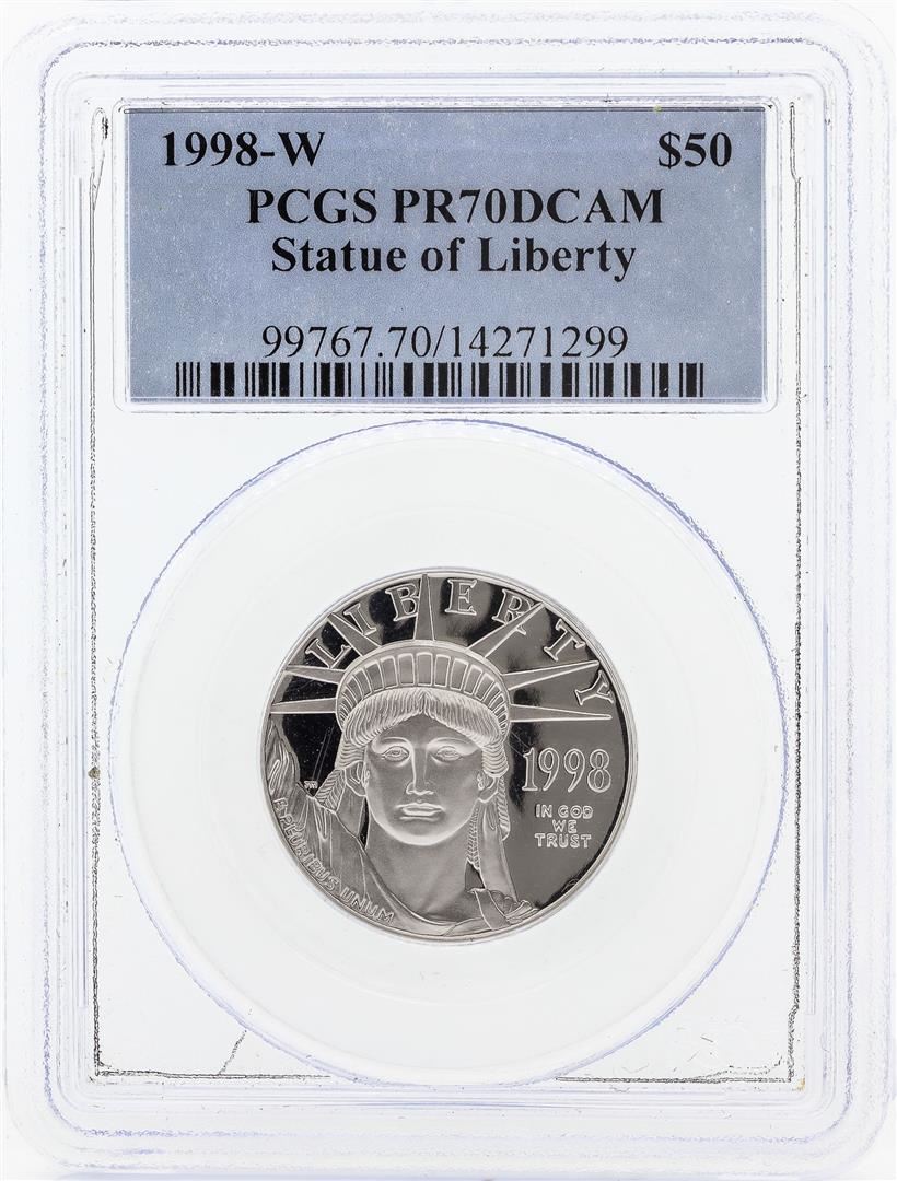 One 1998-W $50 American Platinum Eagle Coin PCGS PR70DCAM. PCGS Graded.