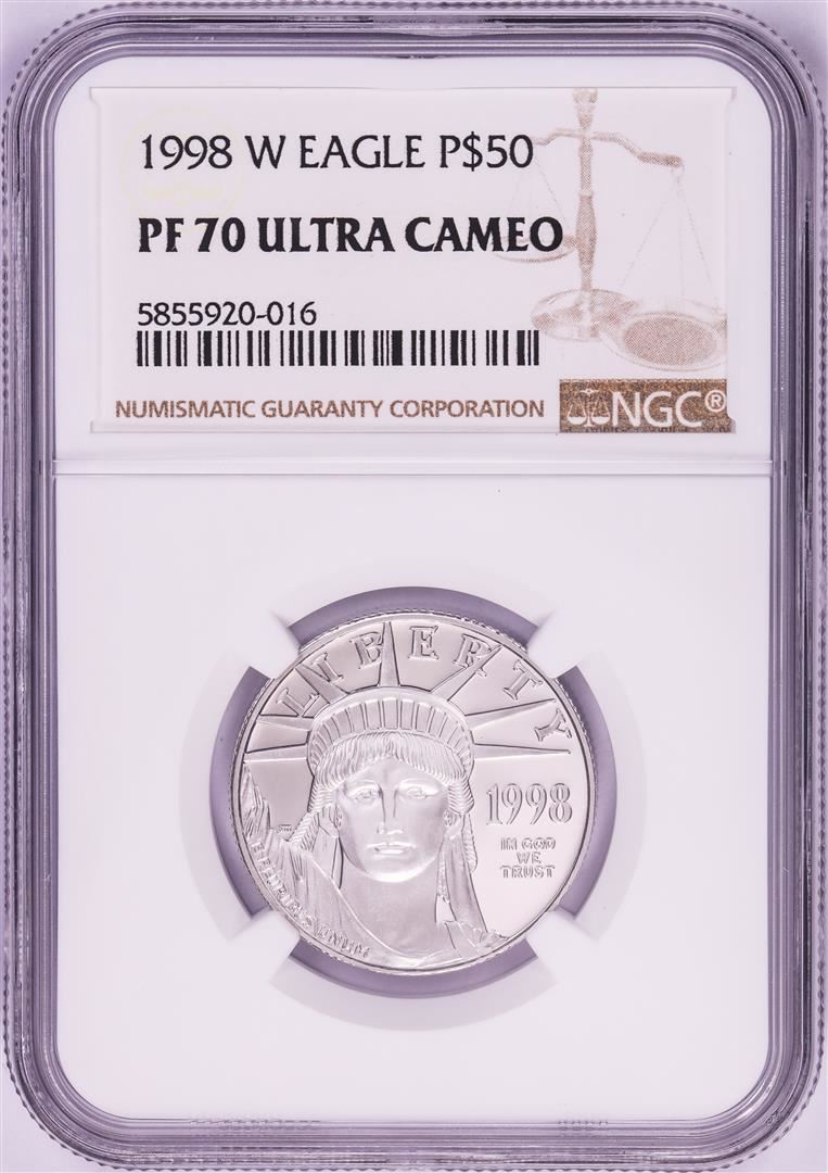 One 1998-W $50 Proof American Platinum Eagle Coin PCGS PF70 Ultra Cameo. PCGS Graded.