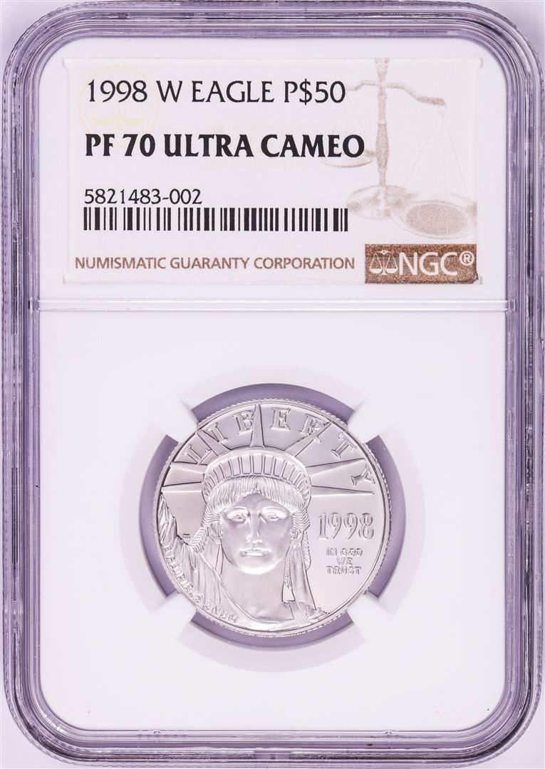 One 1998-W $50 Proof American Platinum Eagle Coin PCGS PF70 Ultra Cameo. PCGS Graded.
