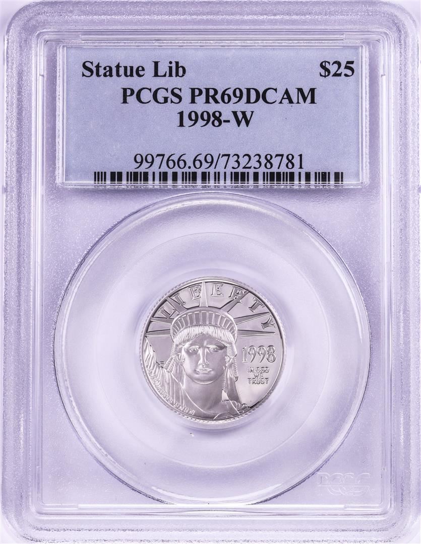 One 1998-W Proof $25 Platinum American Eagle Coin PCGS PR69DCAM. PCGS Graded.