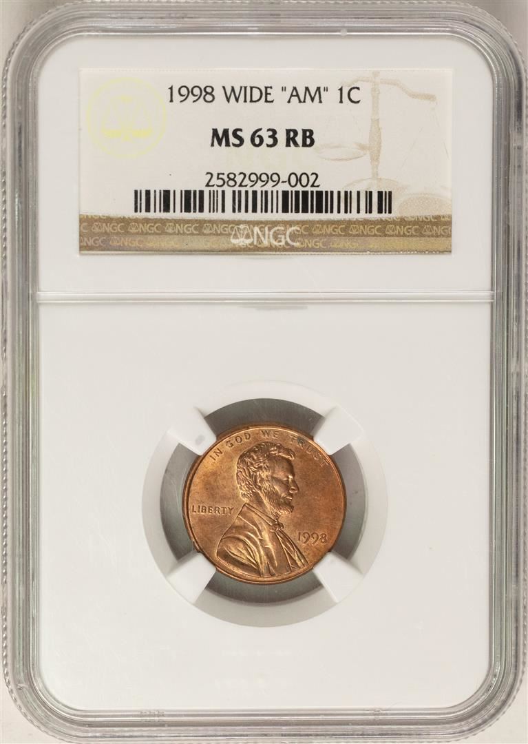 One 1998 Wide "AM" Lincoln Wheat Cent Coin NGC MS63RB. NGC Certified.