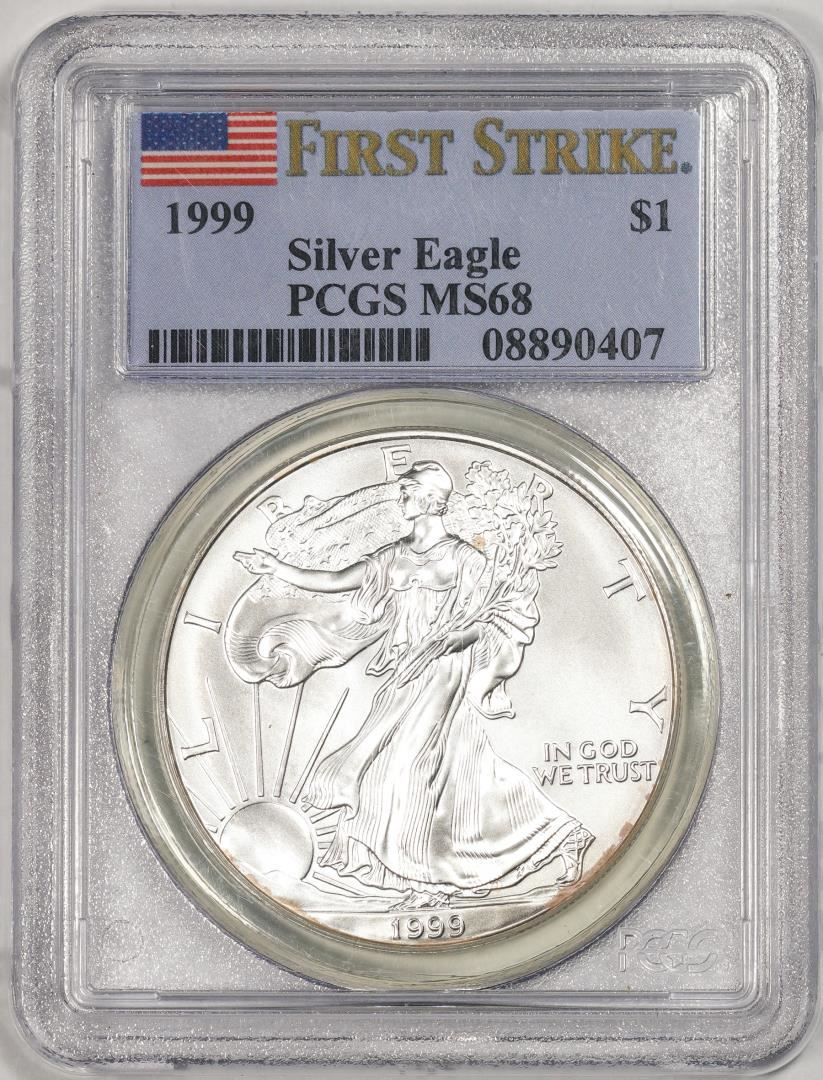 1999 $1 American Silver Eagle Coin PCGS MS68 First Strike