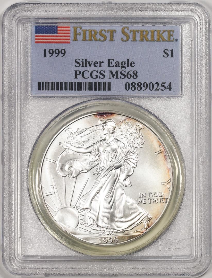 1999 $1 American Silver Eagle Coin PCGS MS68 First Strike