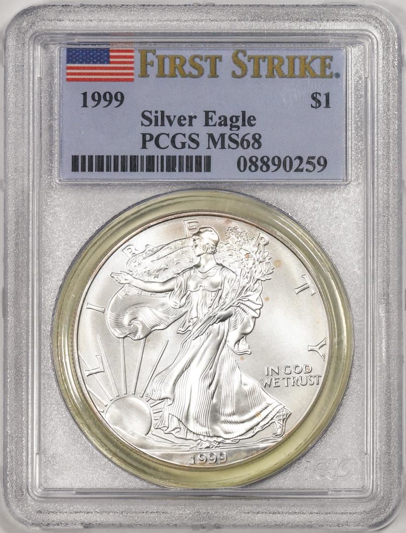 1999 $1 American Silver Eagle Coin PCGS MS68 First Strike
