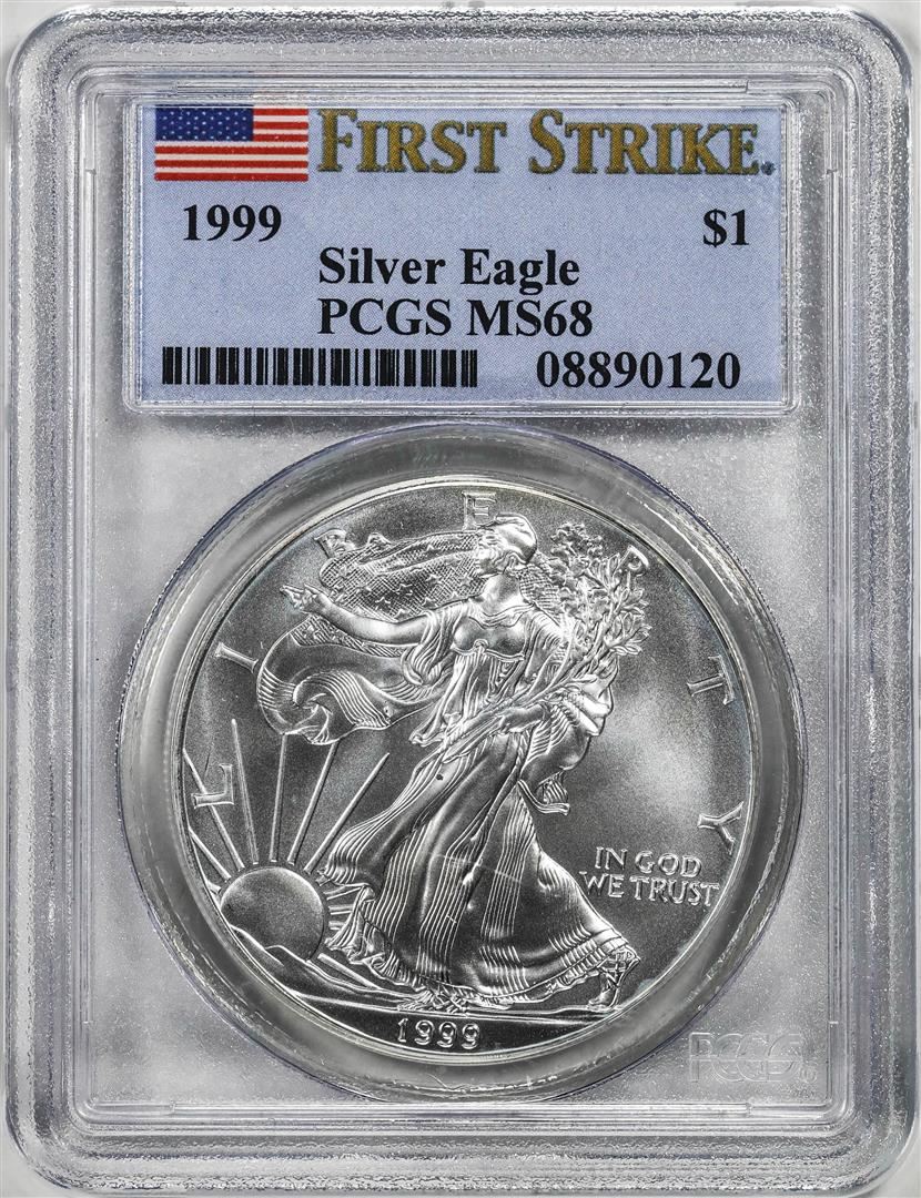 1999 $1 American Silver Eagle Coin PCGS MS68 First Strikes