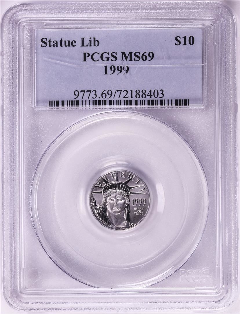 One 1999 $10 American Platinum Eagle Coin PCGS MS69 Scratched Holder. PCGS Graded.