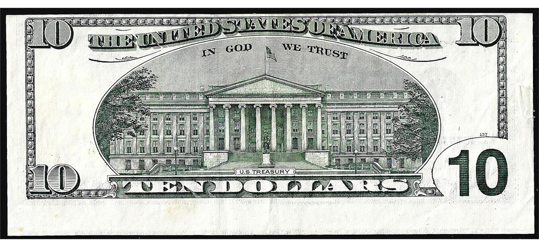 One 1999 $10 Federal Reserve Note BEP Cutting ERROR.