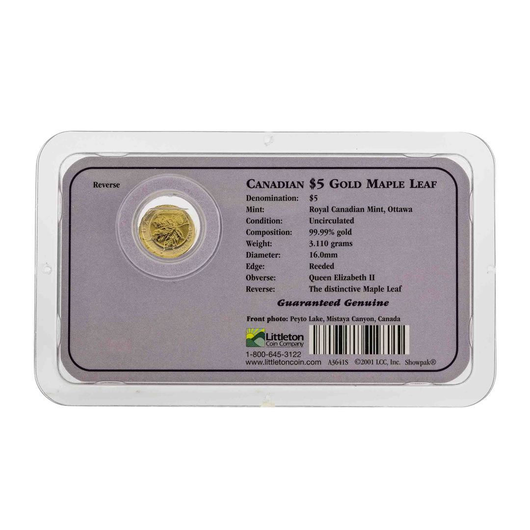 One 1999 $5 Canadian 1/10 oz. Gold Maple Leaf Coin.
