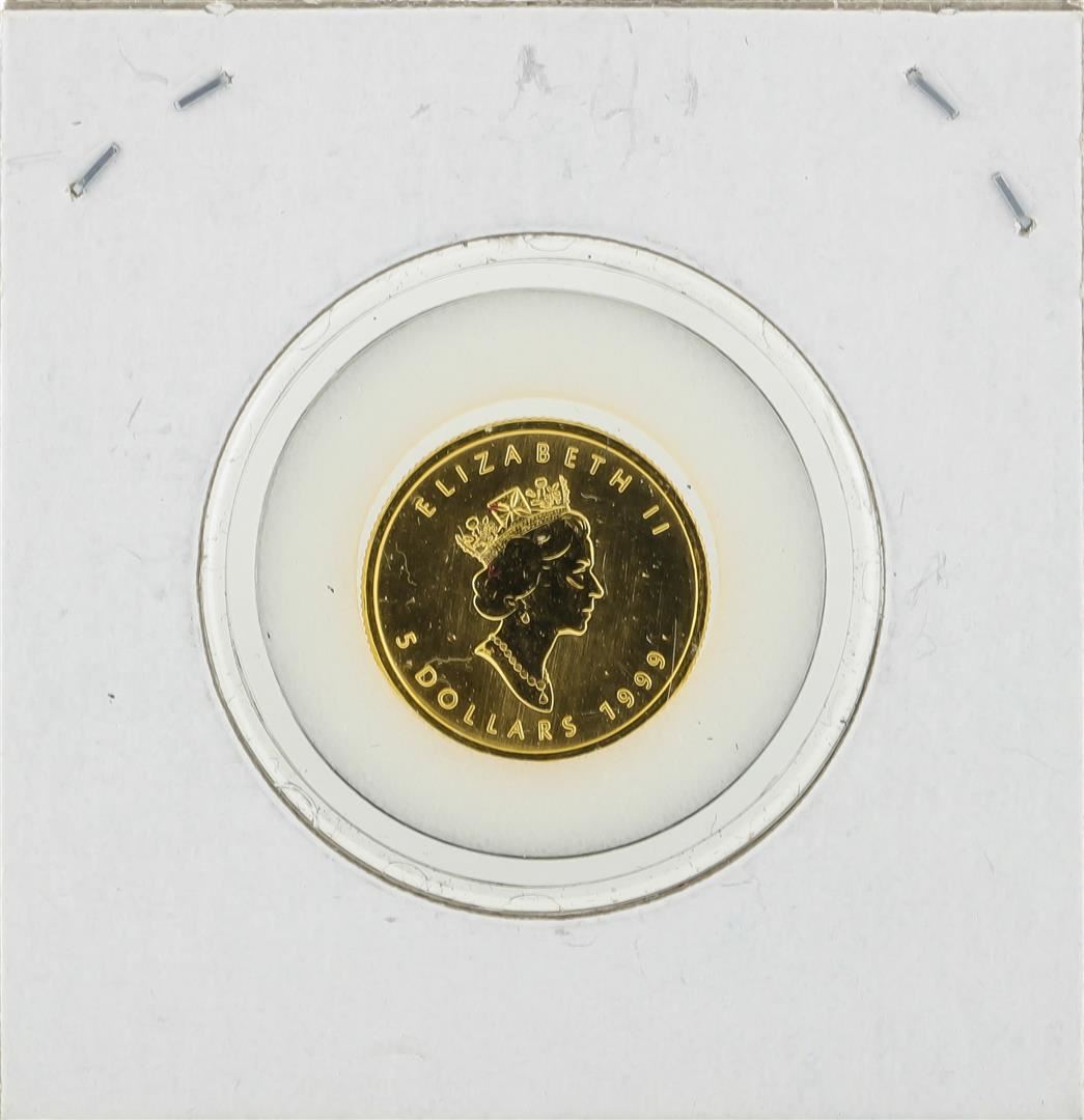 One 1999 Canada Maple 1/10 oz Fine 9999 Gold Coin.
