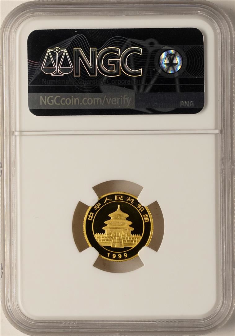 1999 Large Date Plain 1 China 10 Yuan Gold Panda Coin NGC MS69