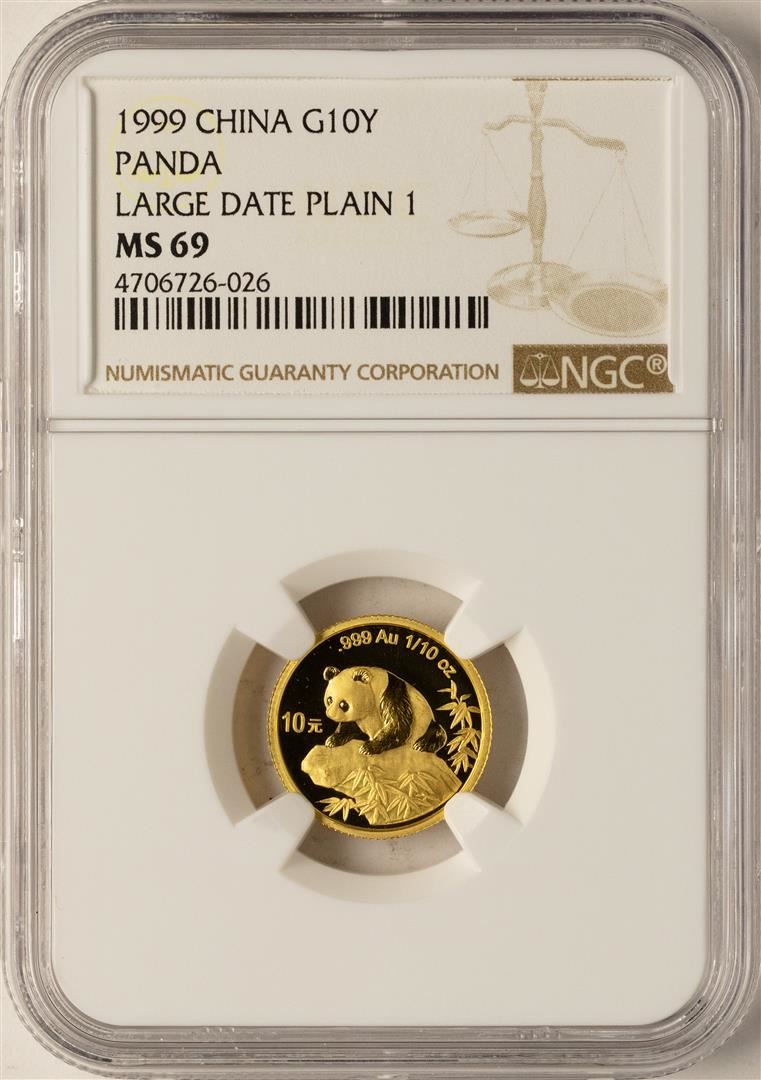 1999 Large Date Plain 1 China 10 Yuan Gold Panda Coin NGC MS69