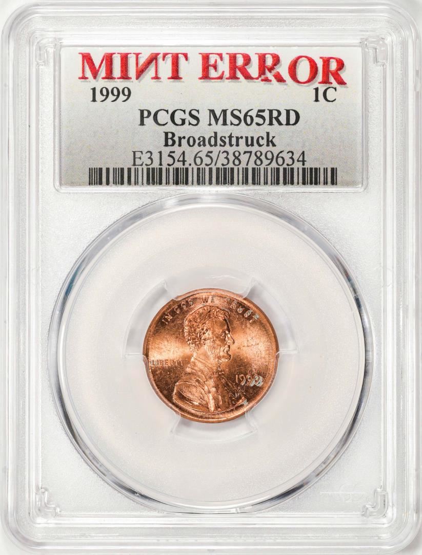 One 1999 Lincoln Memorial Cent Coin Mint Error Broadstruck PCGS MS65RD. PCGS Graded.