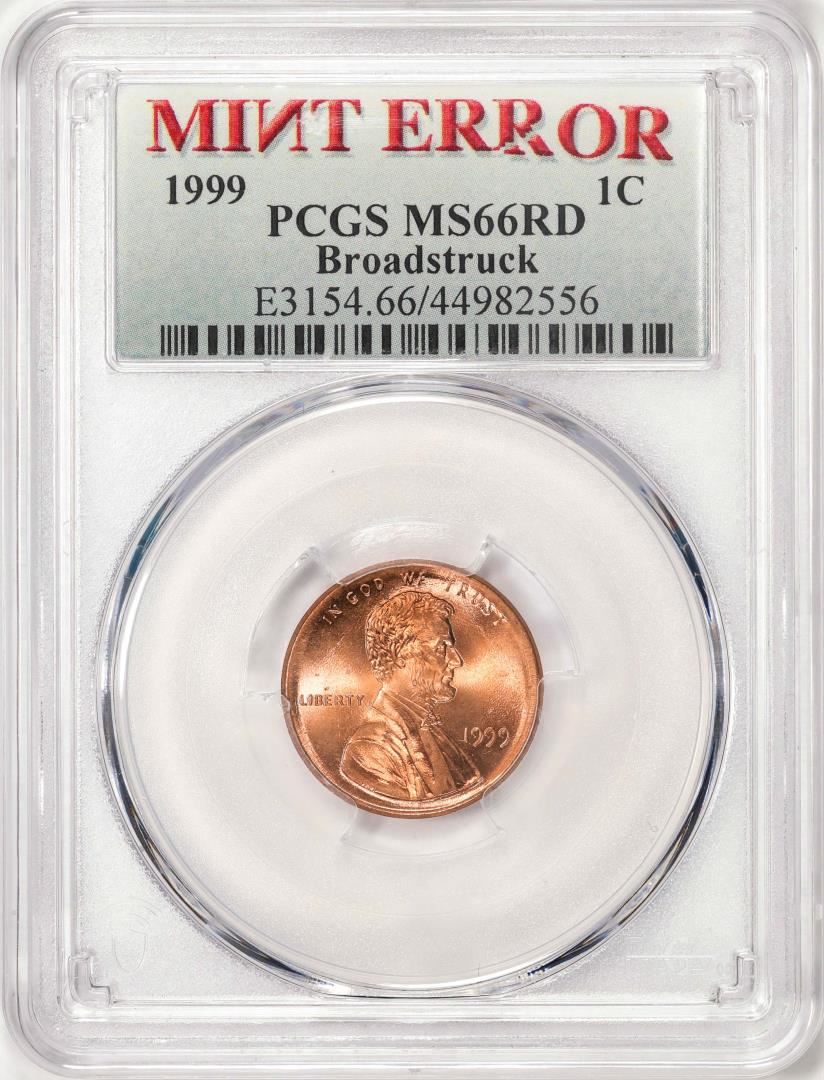 One 1999 Lincoln Memorial Cent Coin Mint Error Broadstruck PCGS MS66RD. PCGS Graded.