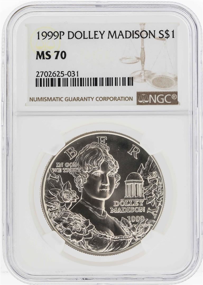 One 1999-P $1 Dolley Madison Commemorative Silver Coin NGC MS70. NGC Certified.