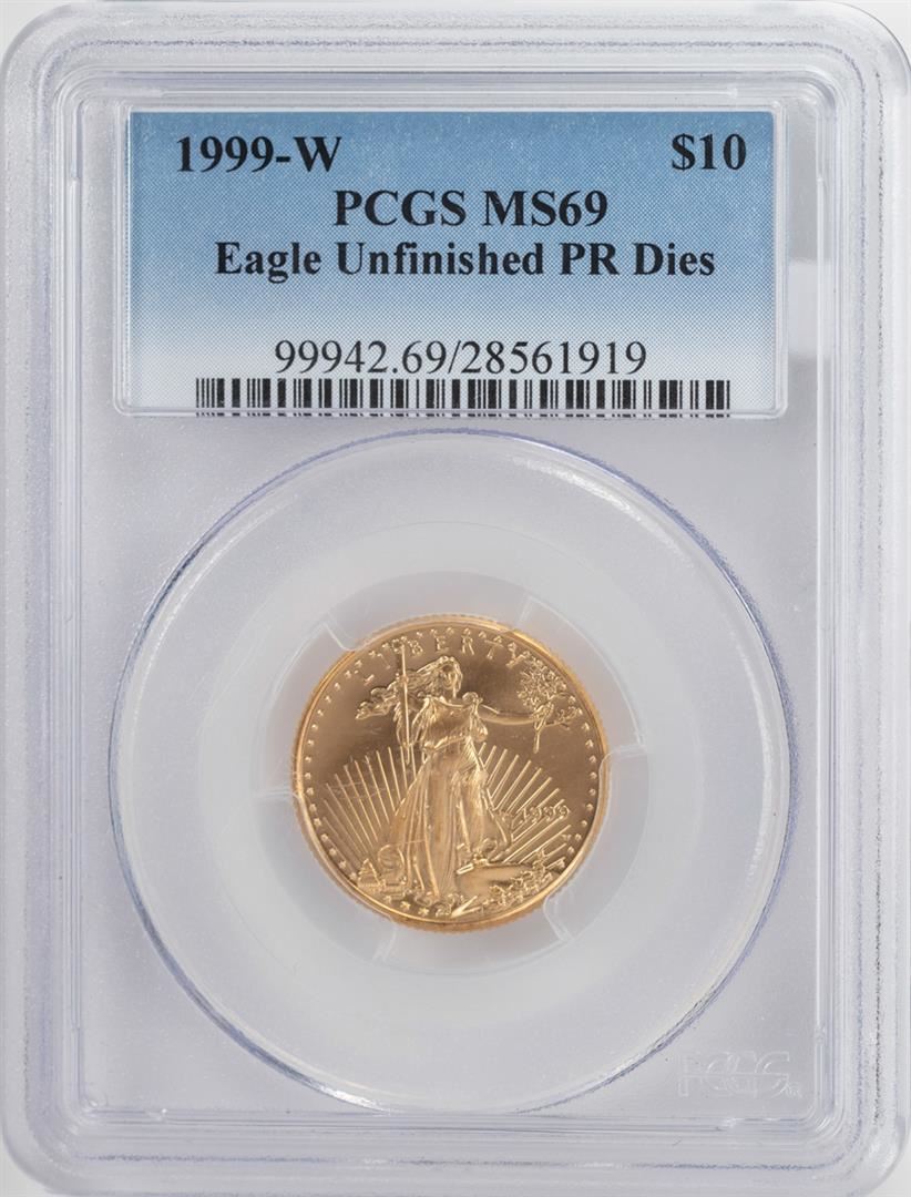 One 1999-W $10 American Gold Eagle Coin PCGS MS69 Unfinished PR Die. PCGS Graded.