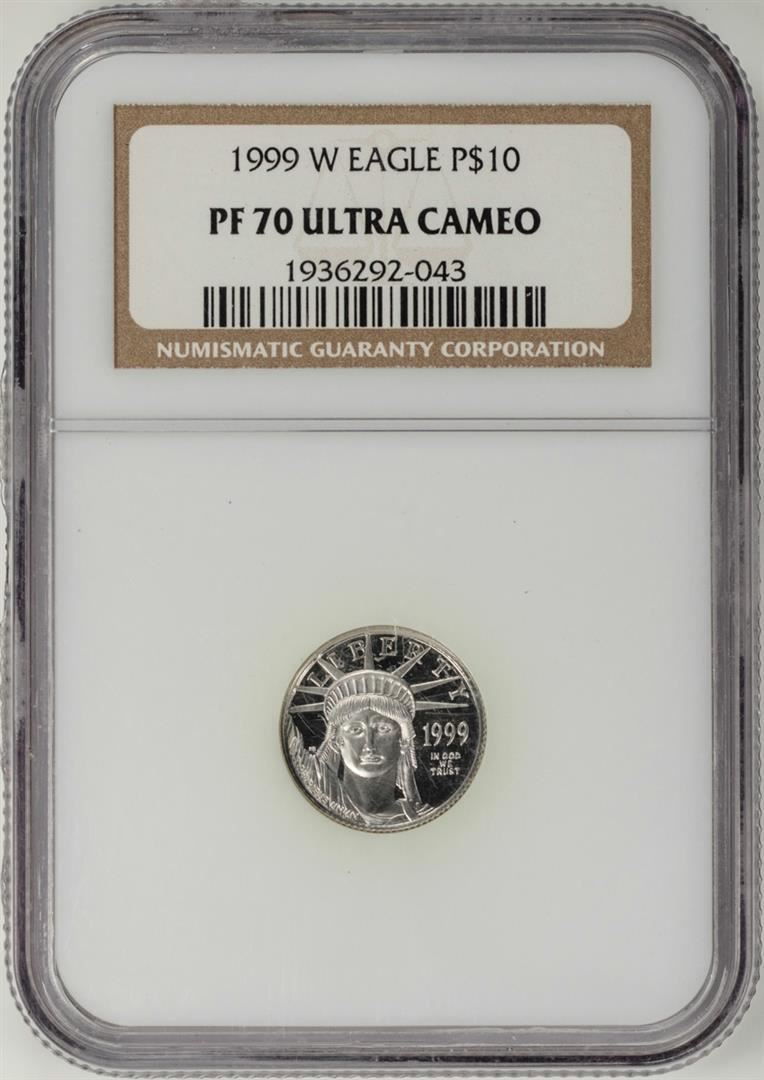 One 1999-W $10 Proof Platinum American Eagle Coin NGC PF70 Ultra Cameo. NGC Certified.