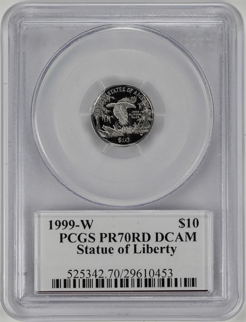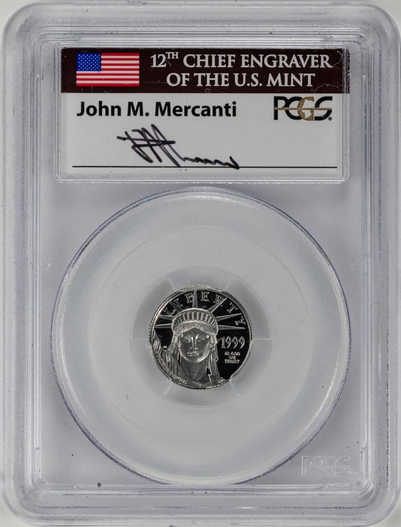 One 1999-W $10 Proof Platinum American Eagle Coin PCGS PR70RD DCAM Mercanti Signed. PCGS Graded.