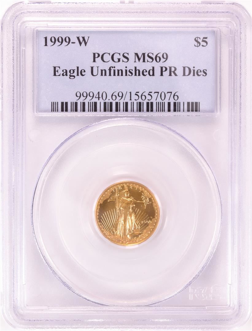 One 1999-W $5 American Gold Eagle Coin PCGS MS69 Unfinished PR Dies. PCGS Graded.