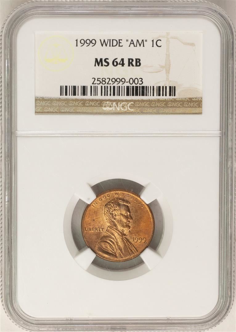 One 1999 Wide "AM" Lincoln Wheat Cent Coin NGC MS64RB. NGC Certified.