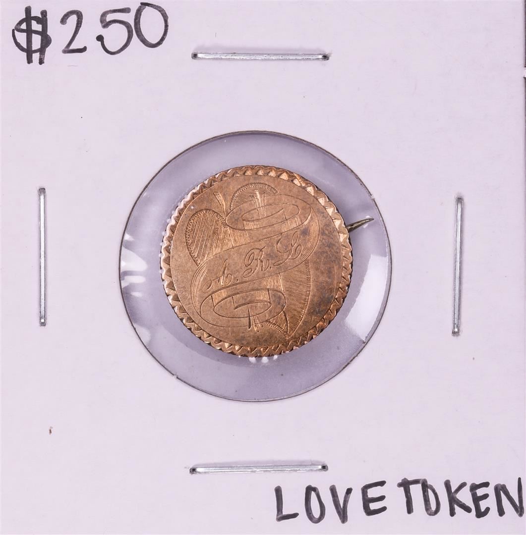 One $2 1/2 Liberty Head Quarter Eagle Gold Love Token Coin Pin.