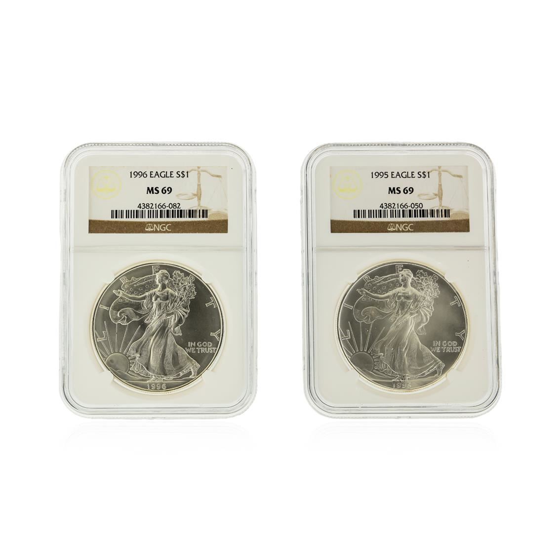 One 2 Coin Set 1995-1996 Silver Eagle Coins NGC Graded MS69. NGC Certified.