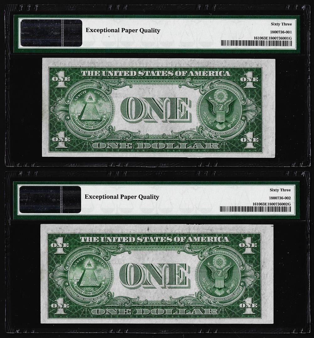 (2) Consec. 1935A $1 "S" Experimental Silver Certificate Notes PMG Uncirculated 63EPQ