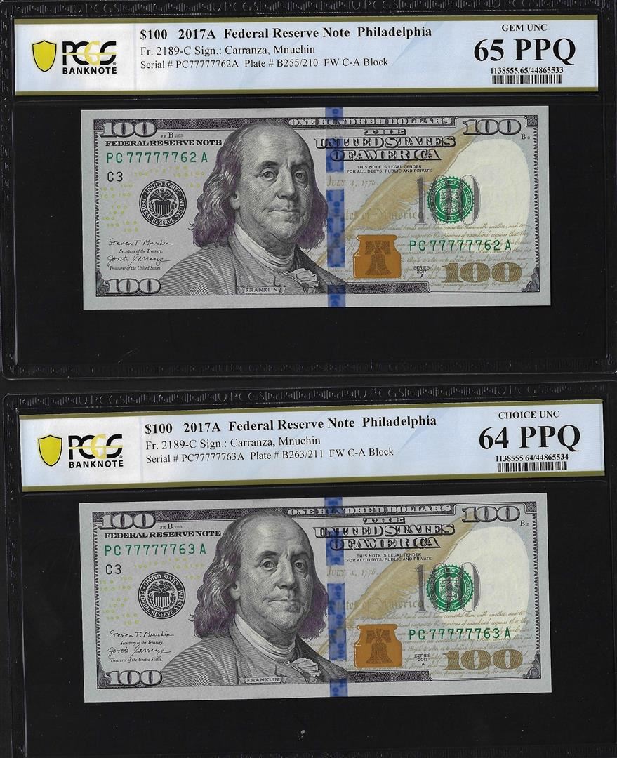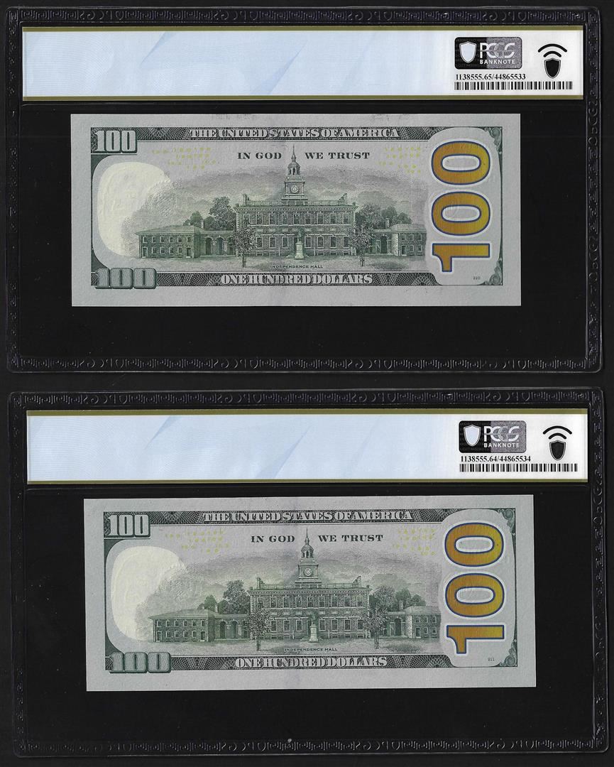 (2) Consec. 2017A $100 Federal Reserve Bank Notes PCGS Choice/Gem Unc. 64PPQ/65PPQ