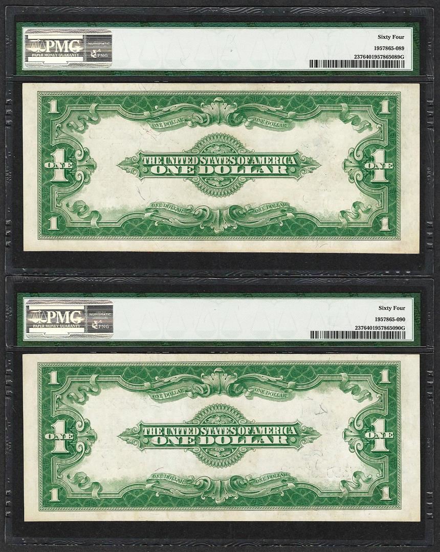 (2) Consecutive 1923 $1 Silver Certificate Notes Fr.237 PMG Choice Uncirculated 64