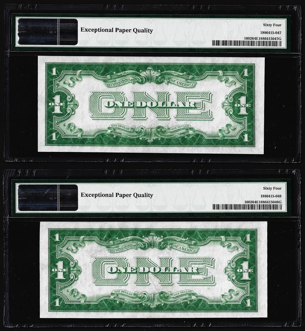 (2) Consecutive 1928B $1 Silver Certificate Notes Fr.1602 PMG Choice Uncirculated 64EPQ