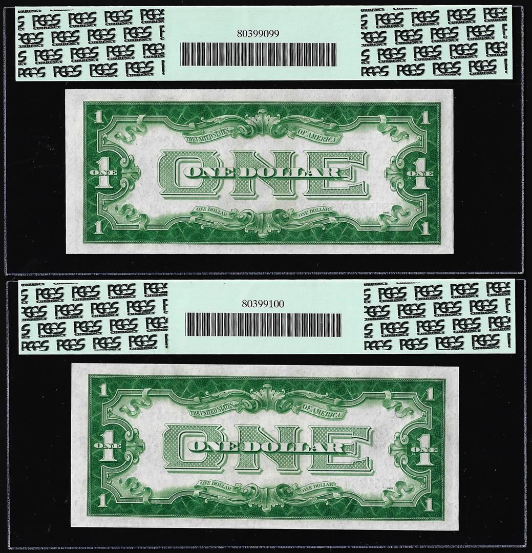 (2) Consecutive 1934 $1 Funnyback Silver Certificate Notes FR.1606 PCGS Gem New 65PPQ